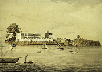 image from Joseph Corry, “Bance Island, River Sierra Leone, Coast of Africa," 1805. Downloaded Jan 8, 2017 from Wikigallery.org.