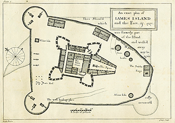 William Smith,,“Plan of James Island and Fort, Gambia, 1727," London: 1727. Downloaded Dec 3, 2016 courtesy of University of Virginia The Atlantic Slave Trade and Slave Life in the Americas, compiled by Jerome Handler and Michael Tuite, and sponsored by the Virginia Foundation for the Humanities and the University of Virginia Library