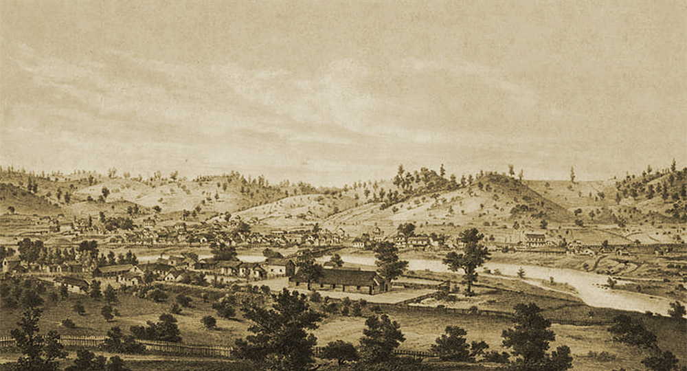 image cropped from George Searle, lithographer, Coloma, 1857, El Dorado County, California, San Francisco: Britton & Rey, 1857 in Calisphere.
