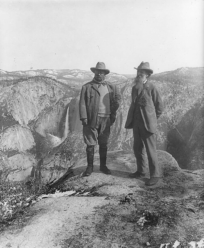 image from "Theodore Roosevelt and John Muir on Glacier Point, Yosemite Valley, California,1906," Library of Congress, American Memory, IDcph 3c07389.